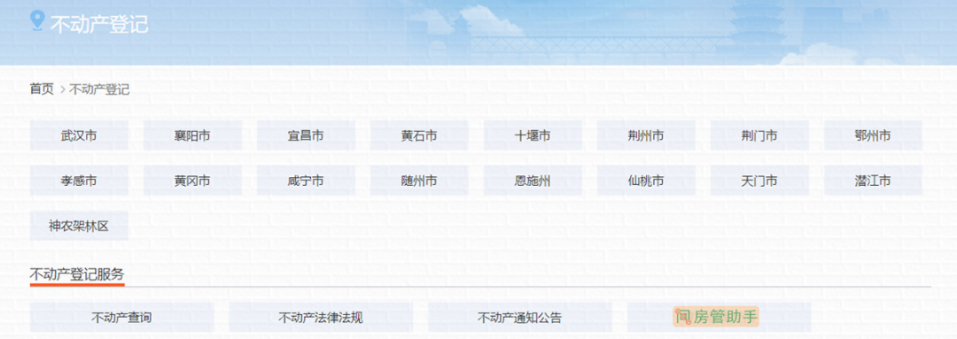 (湖北省武汉市、黄石市、十堰市、宜昌市、襄阳市、鄂州市、荆门市、孝感市、荆州市、黄冈市、咸宁市、随州市、恩施州、仙桃市、潜江市、天门市、神农架林区不动产查询网上办事的统一入口)